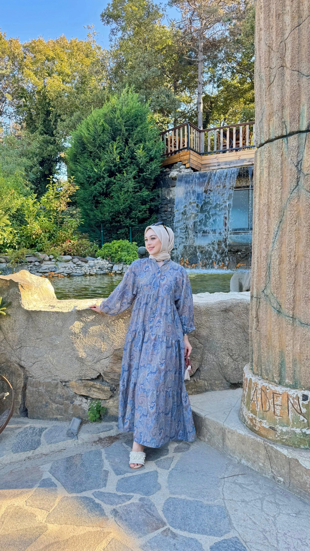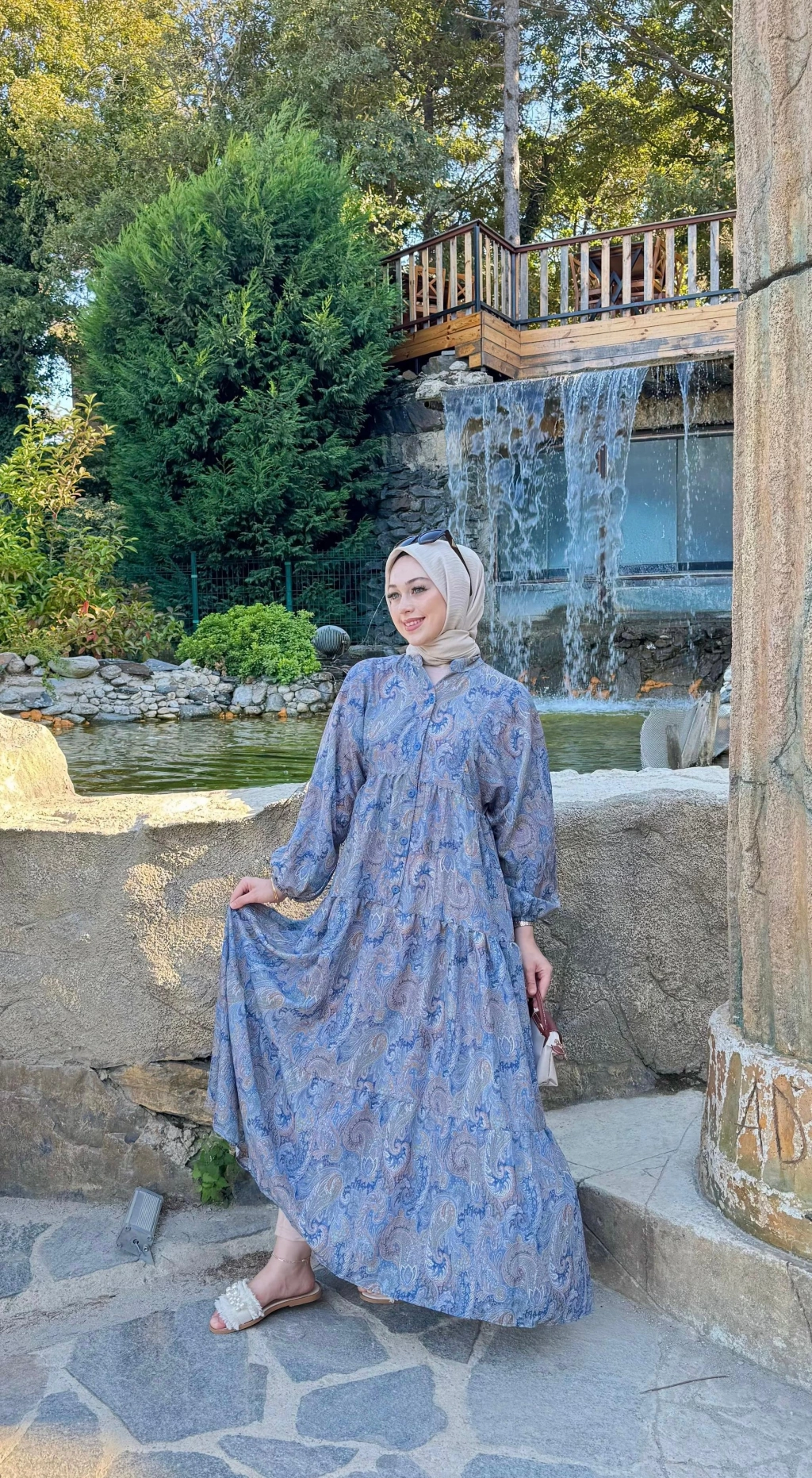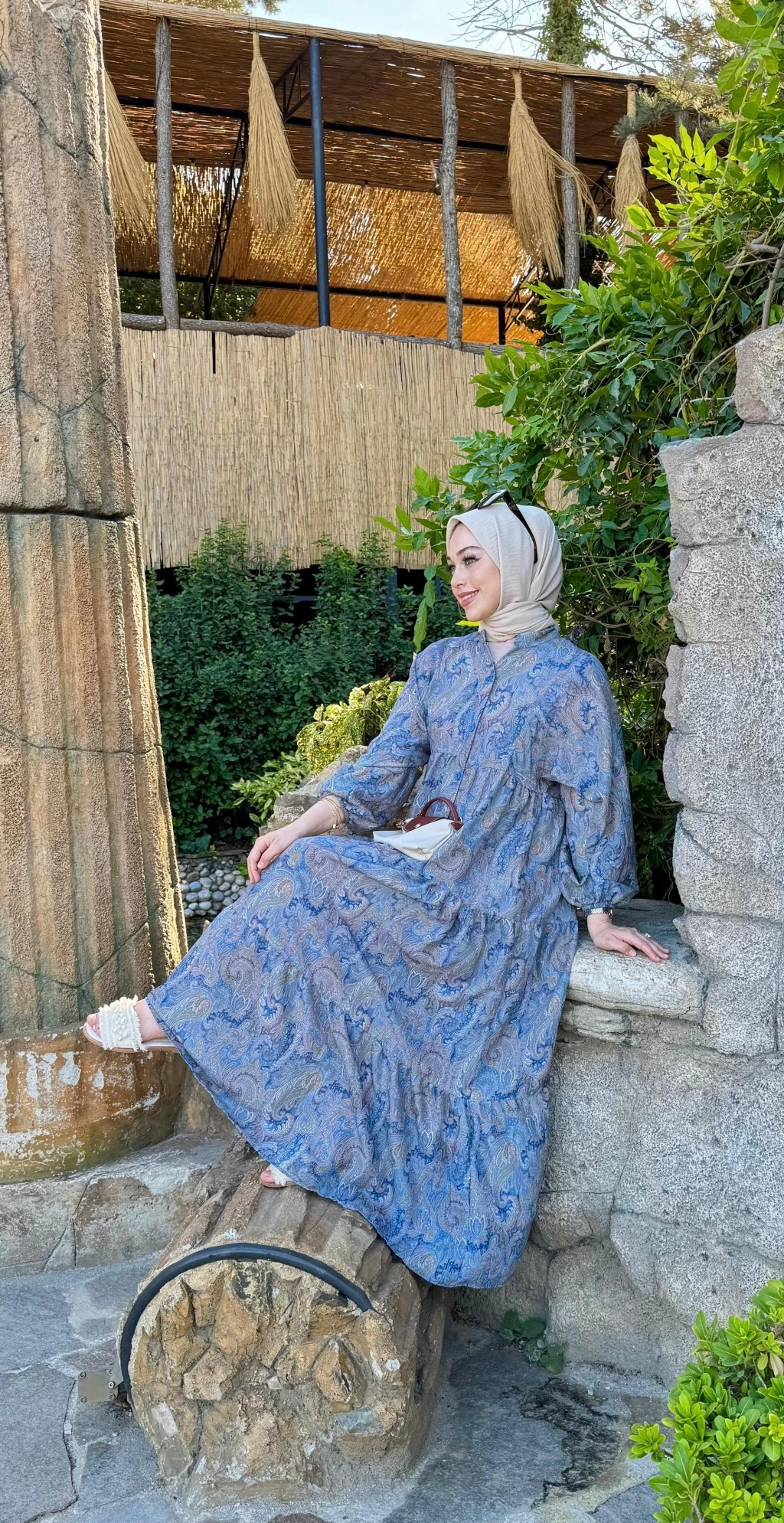 Zarafetin klasik desenlerle buluştuğu Blue Harmony, her detayında inceliği ve şıklığı hissettiren özel bir tasarım. Göz alıcı mavi tonları, soft kahve ve gri geçişlerle birleşerek asil bir görünüm oluşturur. Akışkan kumaşı ve rahat kesimiyle gün boyu konforlu bir zarafet sunar.