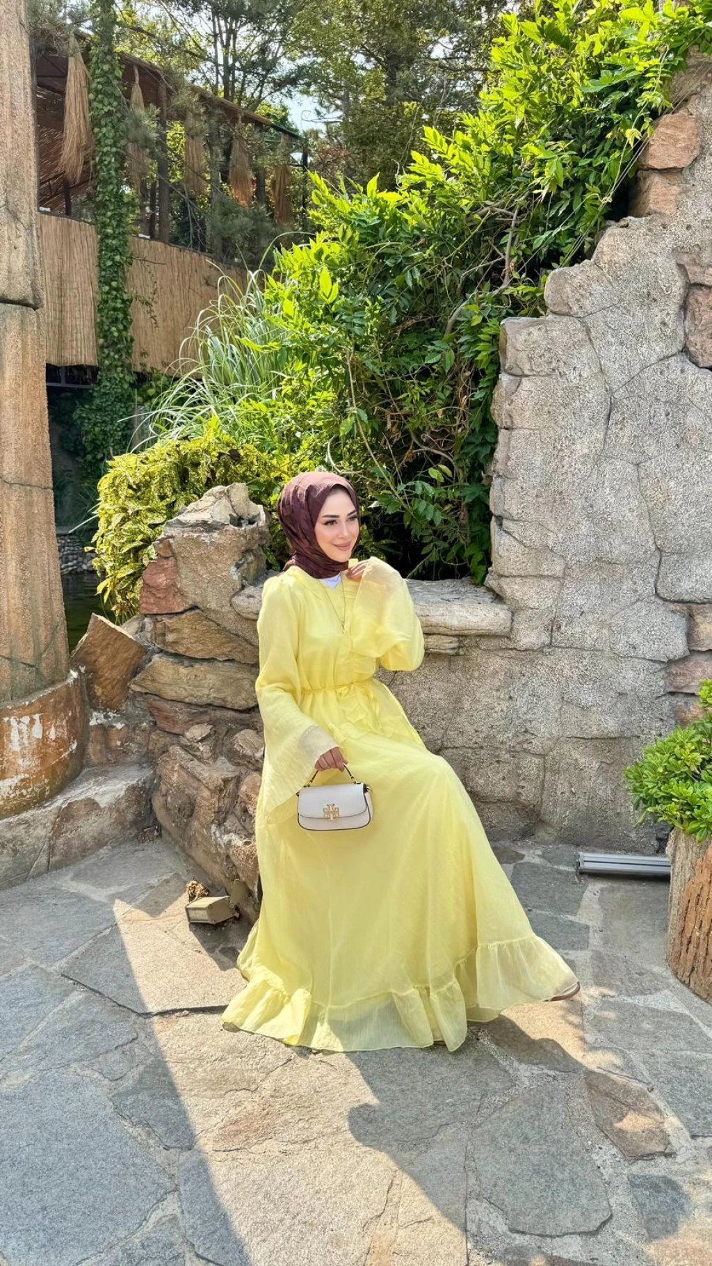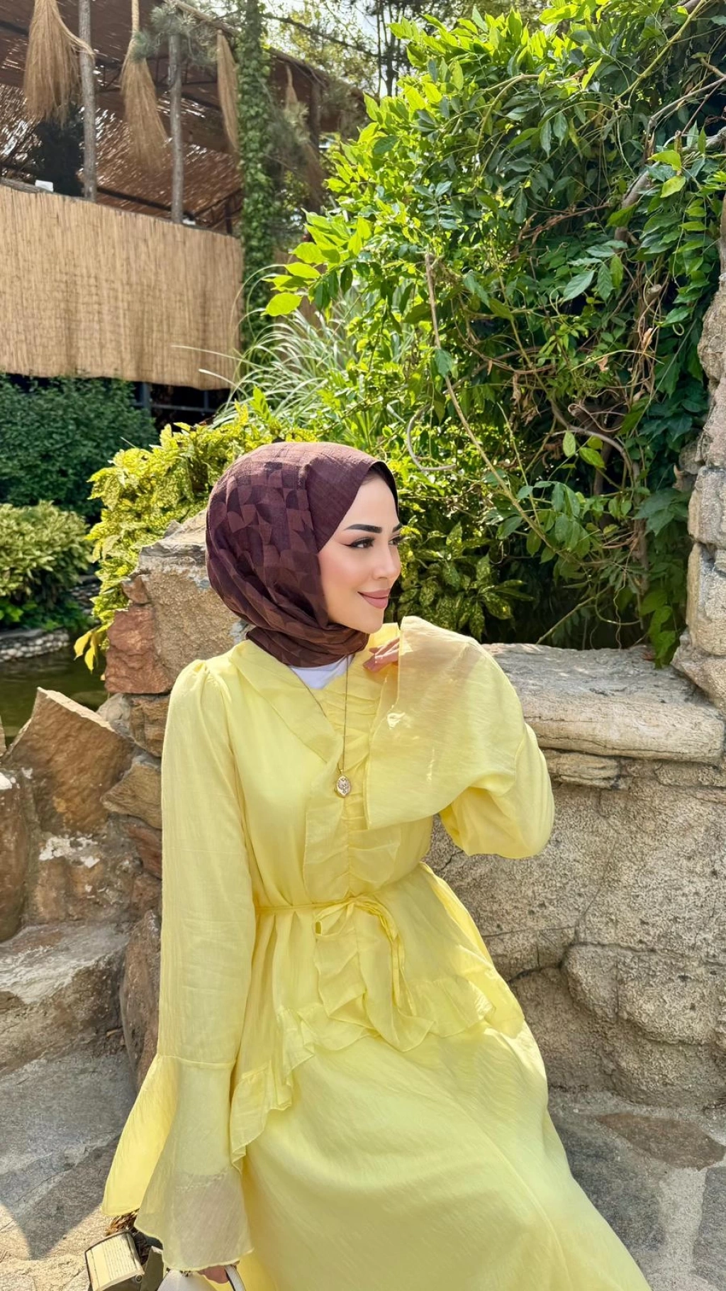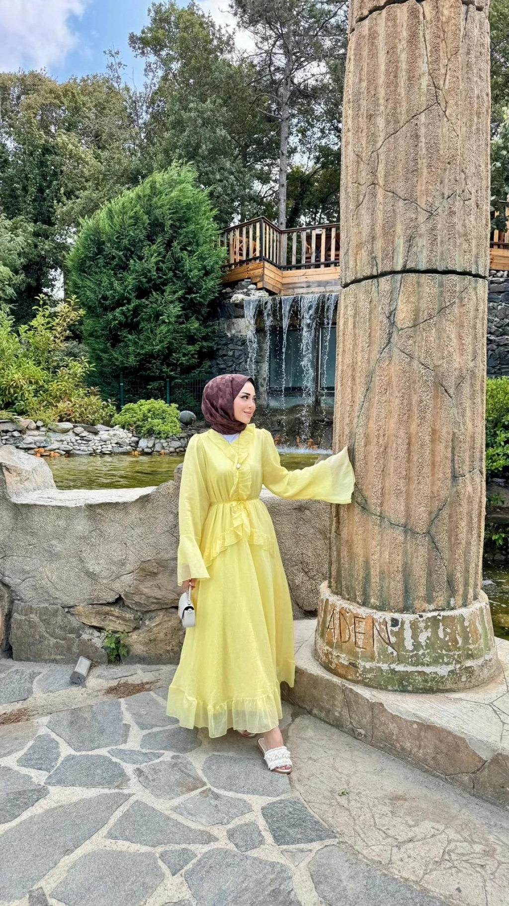 Doğallığın ve zarafetin buluştuğu bu güneş sarısı şifon elbise, sade ama etkileyici bir görünüm arayanlar için özel olarak tasarlandı. Hafif dokusu ve dökümlü yapısı sayesinde gün boyu rahat bir kullanım sunarken, volanlı detayları ve belden bağlamalı tasarımıyla feminen bir siluet oluşturur.