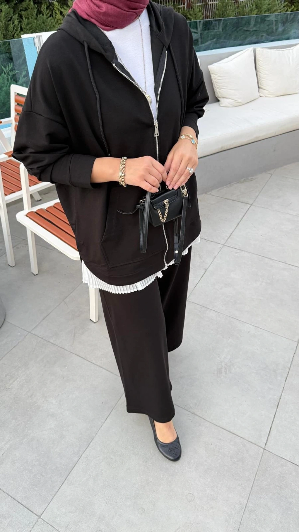 • Üst: Kapüşonlu, fermuarlı, cepli