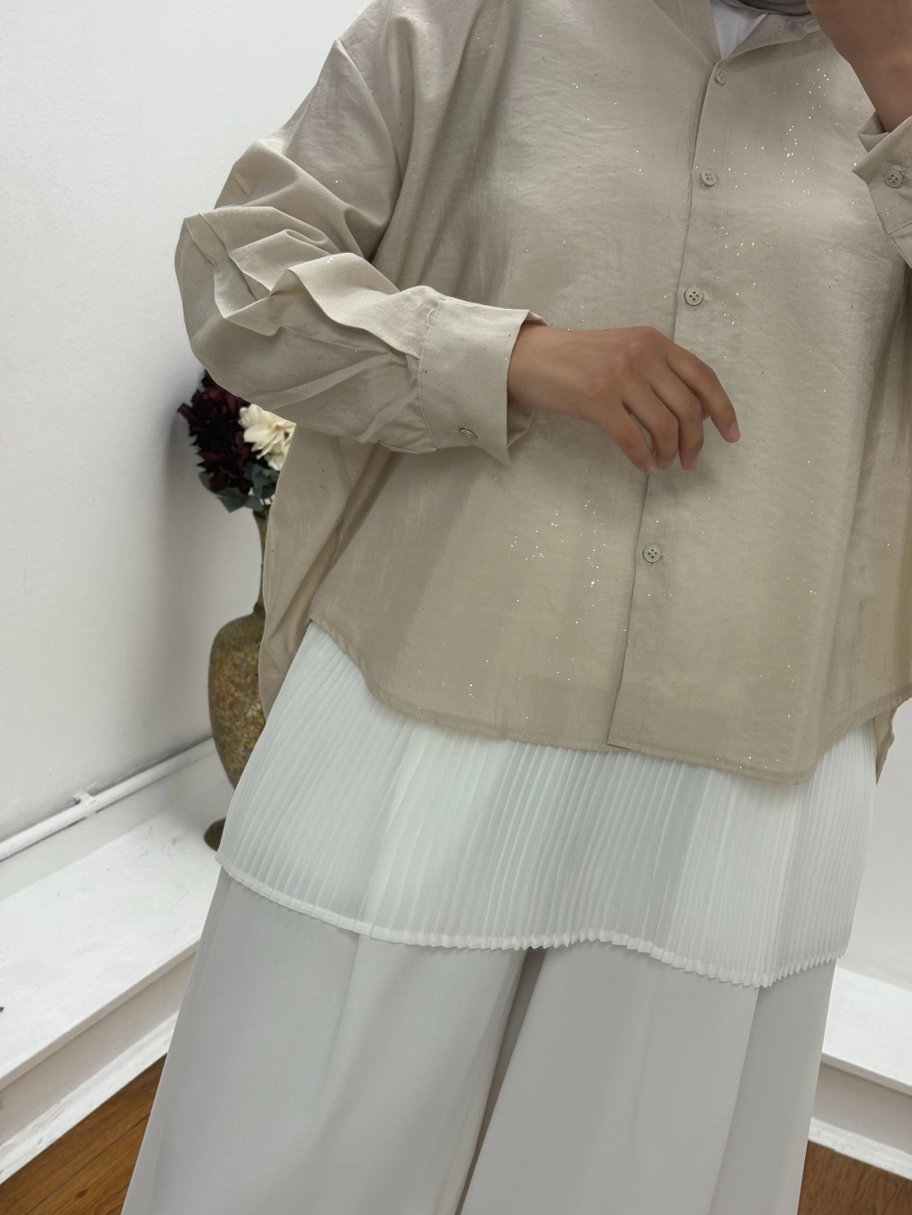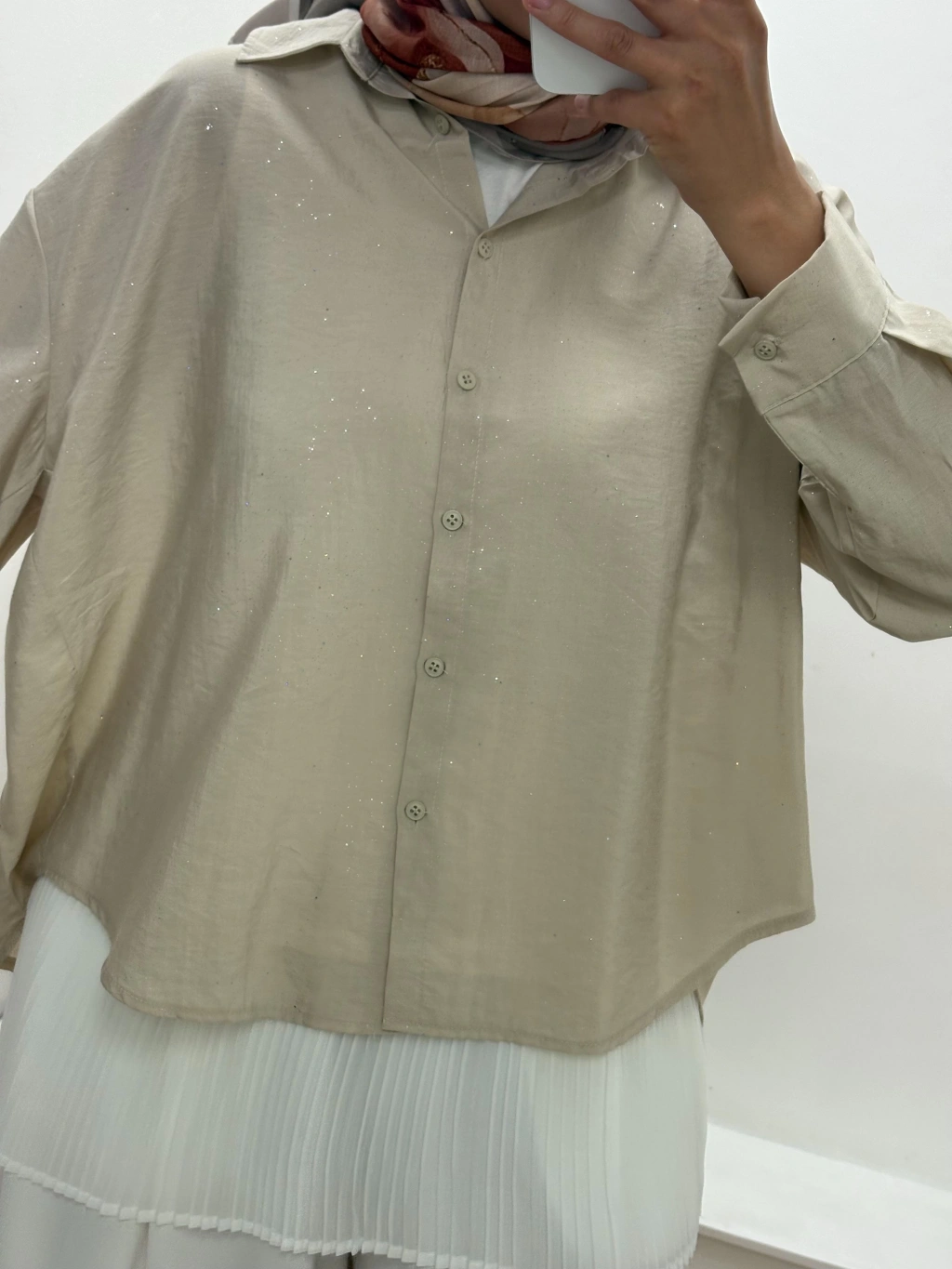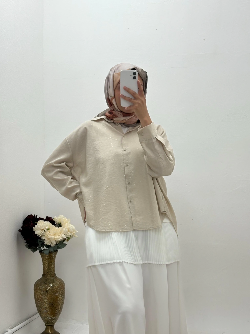 İNCİ İŞLEMELİ DENİM GÖMLEK / CEKET